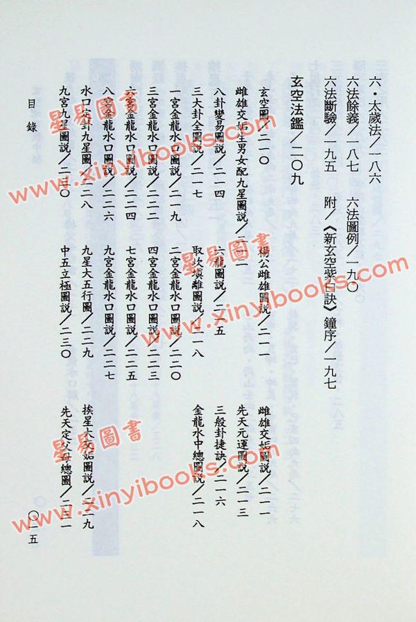 卷二、两元八运玄空六法篇:这一派在港台之间尚少人传授及研习,精通者更是少之又少,在此先公开其要旨供有夙慧的读者私淑。其中并以笔者为弟子张成春所作的序文,叙述此派的传承内容以及谈养吾(浩然)的生平著作梗概,俾使以后读者对此门派不再「陌生」。本卷先公开的是谈养吾《玄空六法纲要》及曾怀玉(辉山)的《玄空法鉴》,其它数据俟有机缘时再揭露。