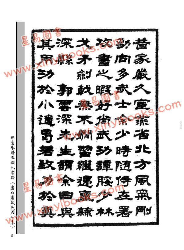 最後,此書述拳,並非純粹記錄綱要,紙上談兵;而是細膩地描述具體動作要點,精簡易明。例如崩拳「前手攞肘望上托,進步出拳先打脇」,便是演法、練法與打法俱備。讀者如能反覆閱讀,定可心領神會。